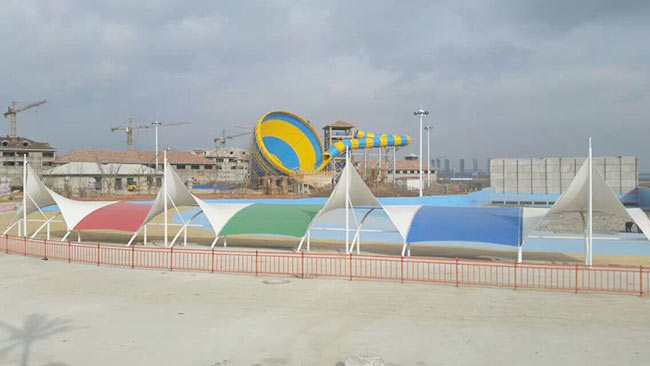 我公司承建的青州泰华城嘟嘟熊儿童乐园 膜结构工程,采用国内优质PVDF建筑膜材,钢构件制作加工精良,底漆采用环氧富锌底漆,面漆采用国内优质双塔白瓷漆,从根本上保证了车棚的质量与艺术性。